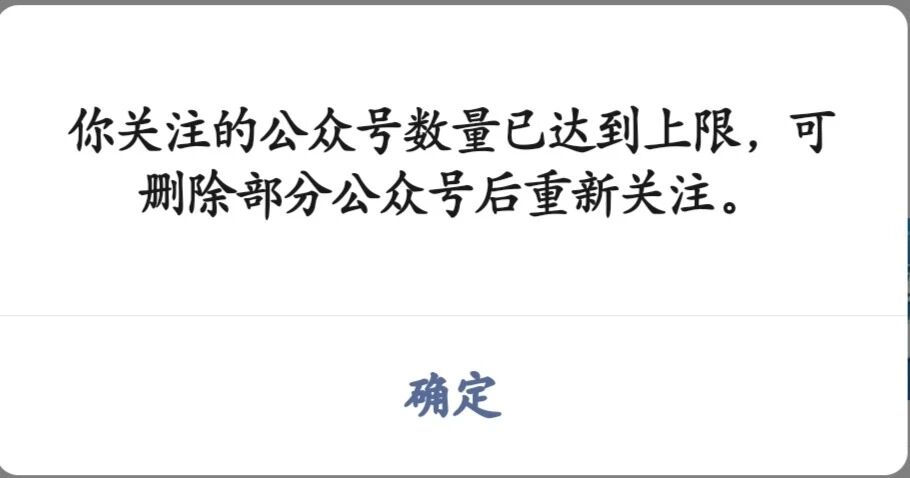 关注微信公众号和服务号数量达到限制,请问关注公众号和服务号数量有限制吗,限制数量多少?