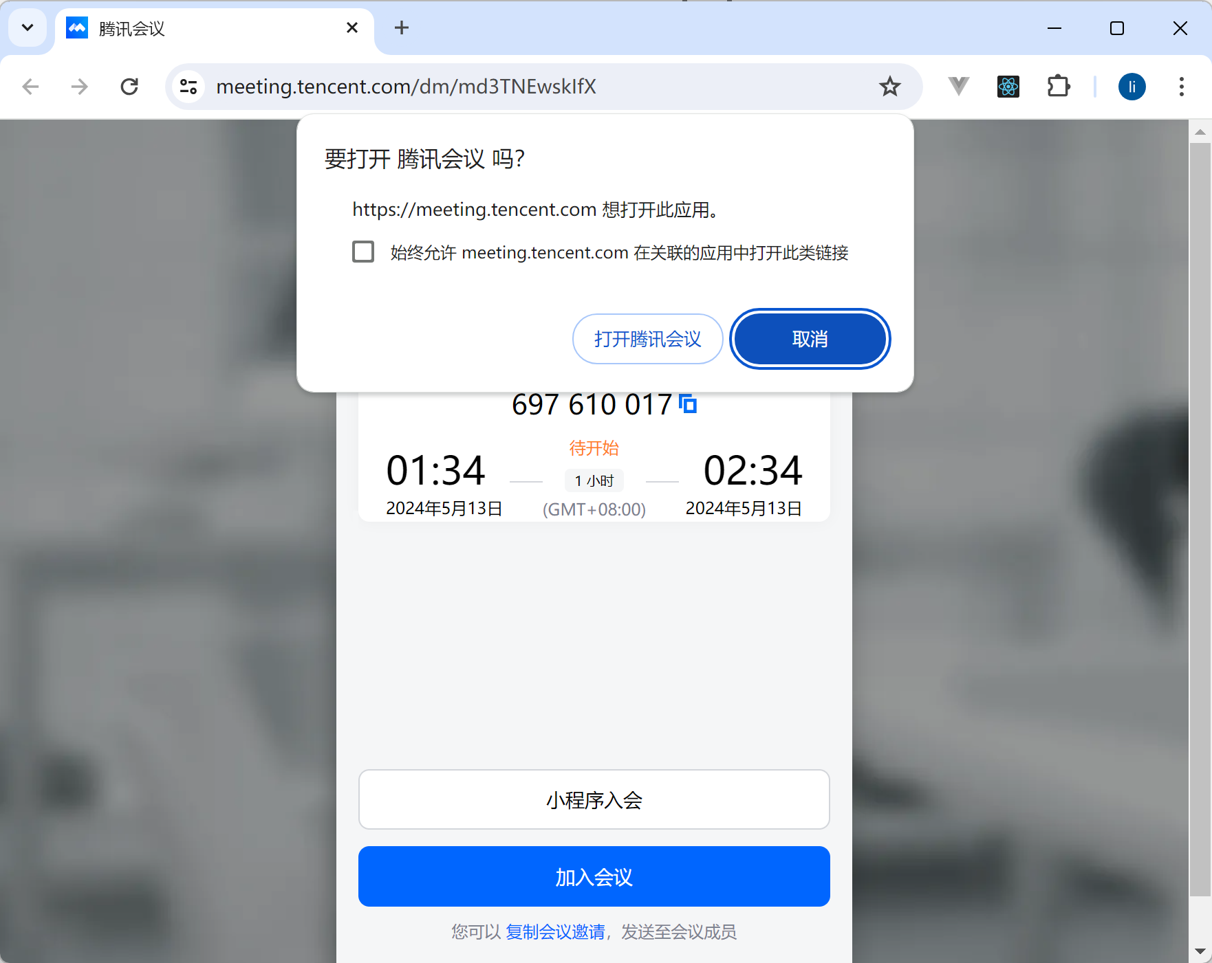 类似腾讯会议,创建一个会议,用户在pc端微信上打开https://meeting.tencent.com/dm/md3TNEwskIfX 会议连接,可以拉起 pc端的腾讯会议