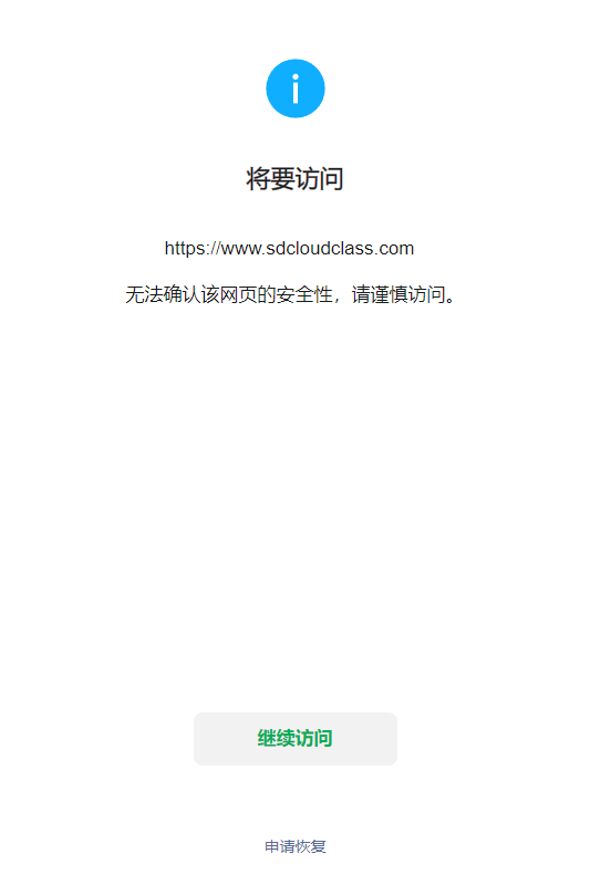 您好,域名 https://www.sdcloudclass.com/ 是正常备案,浏览器访问正常,我是站点管理员,访问时间如图2025/03/24,微信访问网站出现“无法确认该网页的安全性,请谨慎访问”,站点内也没有不安全的内容,请核实后帮忙解除拦截,谢谢!