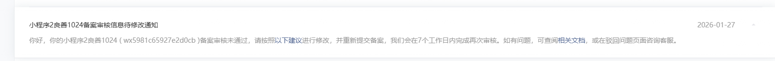 点了蓝色字体 它又说 当前小程序不处于驳回状态