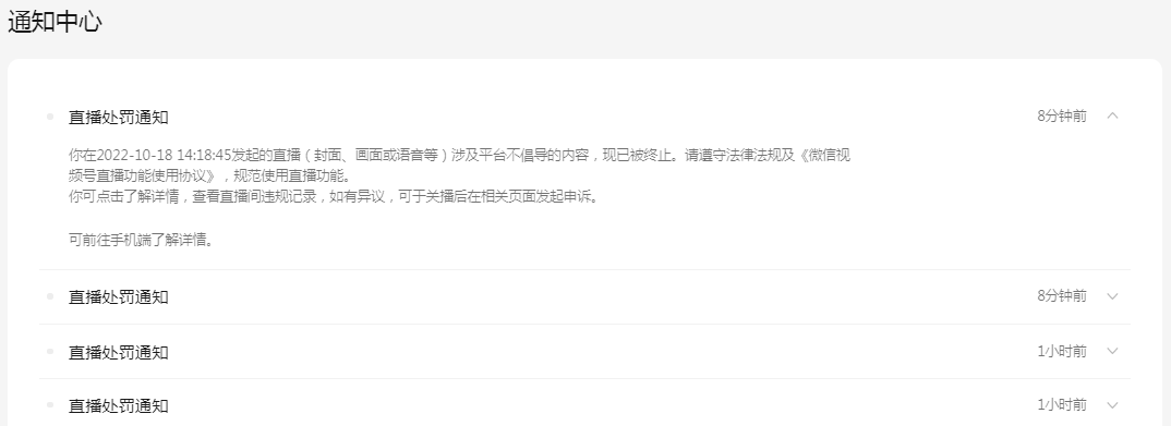 以往的直播也是这样照常进行,没有任何的诱导行为,直播的内容都是为客户提供的免费服务。为什么本次直播总是无故发出处罚通知?但又不告知具体原因,总是这样提示也解决不了根本问题啊,希望有发出处罚通知的同时就对应发出违规的具体原因,知道错在了哪里才能从根本上解决问题啊!