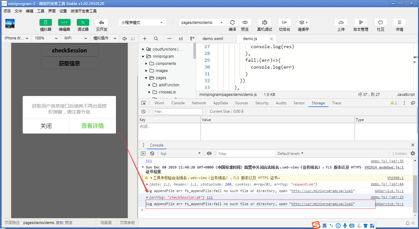 当点击open-type=‘getUserInfo’的按钮,点击拒绝之后,再调用wx.login接口,返回错误信息如下,是怎么回事?
