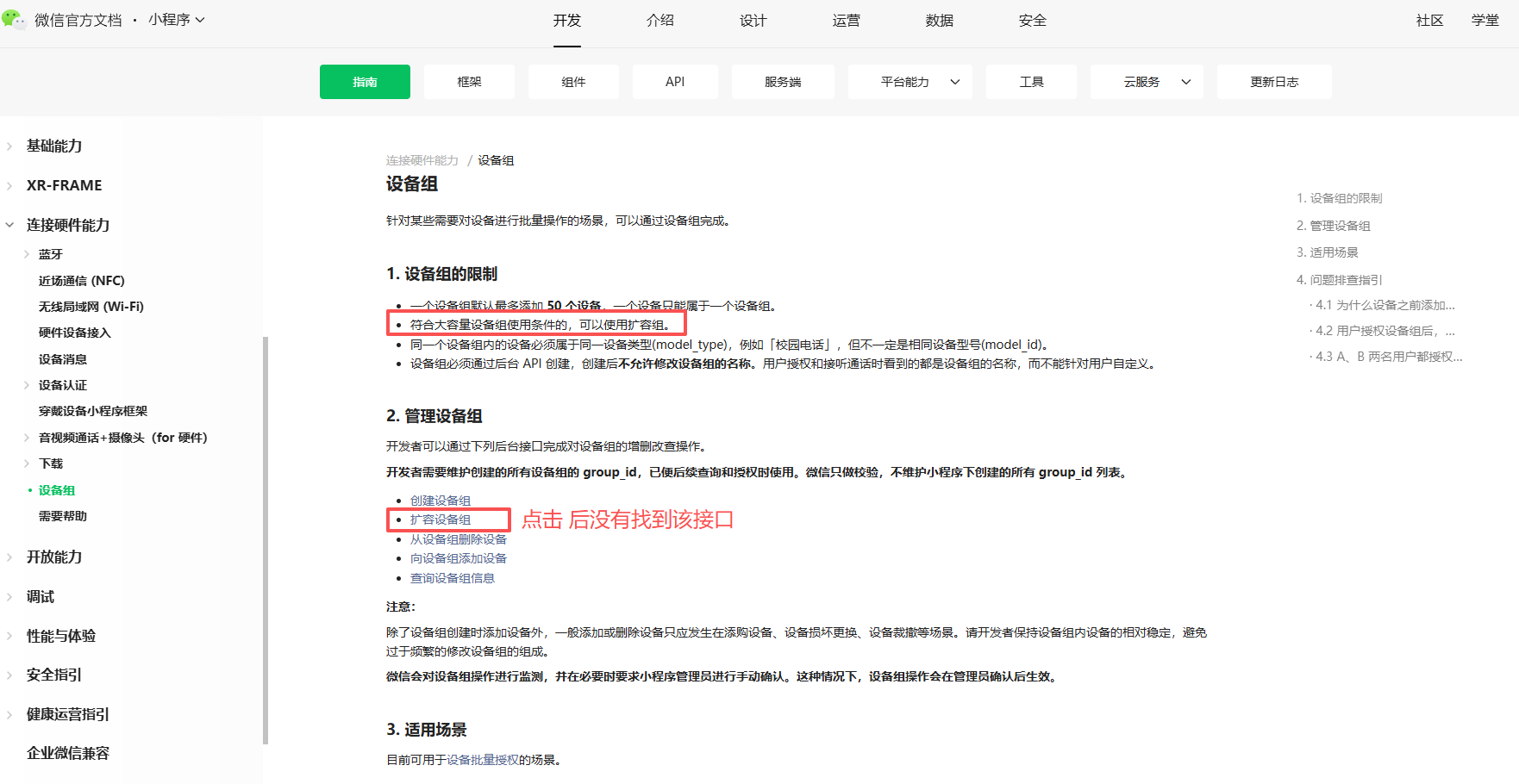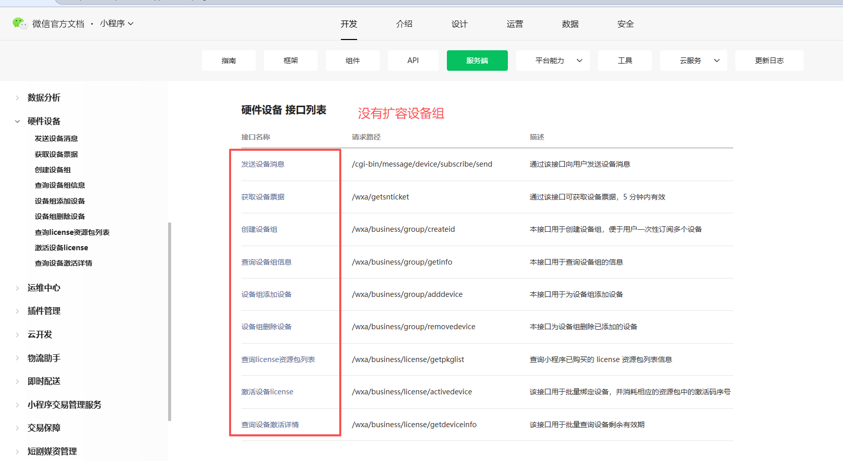 点击链接:https://developers.weixin.qq.com/miniprogram/dev/OpenApiDoc/hardware-device/expandGroup.html
