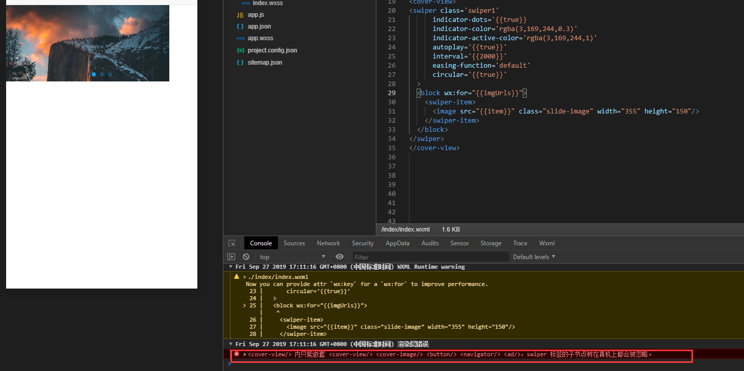 2.真机上swiper动画失效并且下面的小点也没有??cover-view中到底能不能使用swiper轮播??