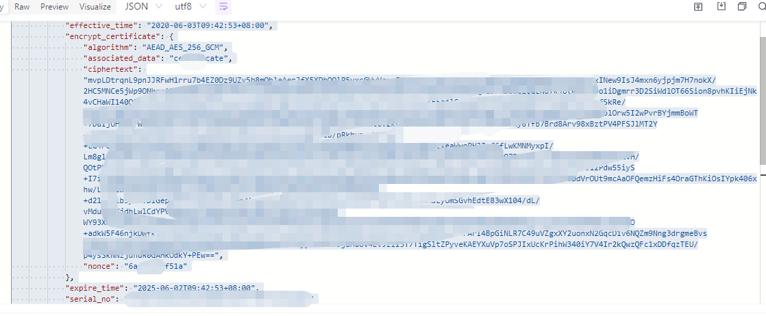 查看发现Wechatpay-Serial和我本地的证书的序号不一样。据说Wechatpay-Serial是平台证书序列号,