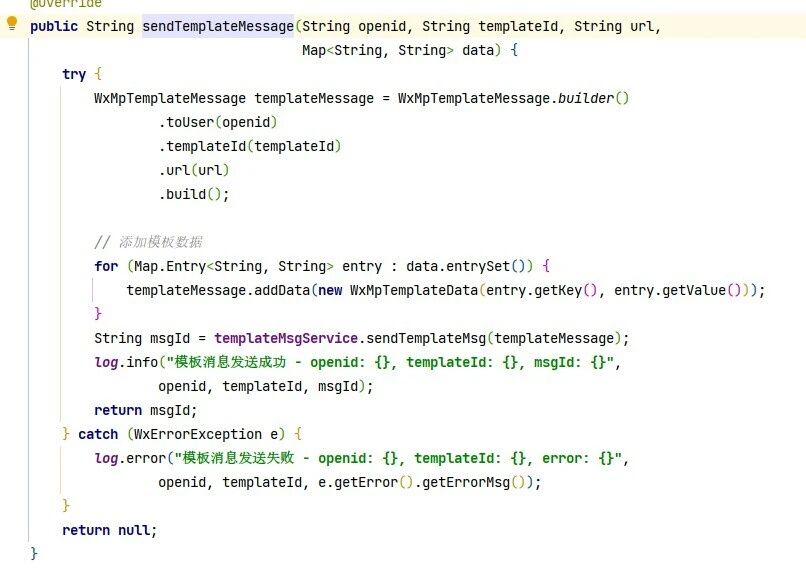 2025-11-03 09:39:39.743 [http-nio-10700-exec-21] INFO c.z.service.service.wechat.impl.WeChatServiceImpl - 模板消息发送成功 - openid: oRnHWvx-5P50PgkOlVLZE, templateId: UwAXmMr8w3CJeLlzlqCzcro, msgId: 4236946792496939011