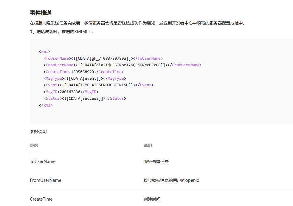 该模板消息发送成功后的事件提供下截图。