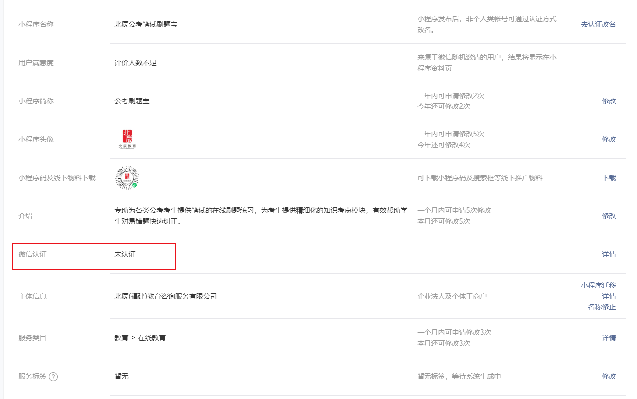 已经认证过的公众号,复用资质认证的小程序,还是未认证状态。
