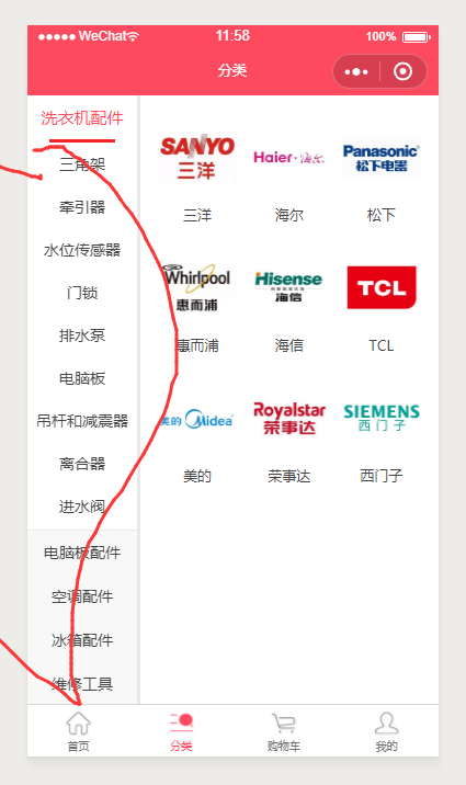 这不很简单么,加载的时候就把左边分类的参数带上去啊。放在产品列表里面,点击的时候不就有了么?