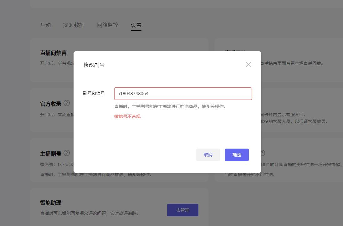 副主播修改为啥提示微信号不合规?同样的微信号,我用其他小程序登陆就可以修改