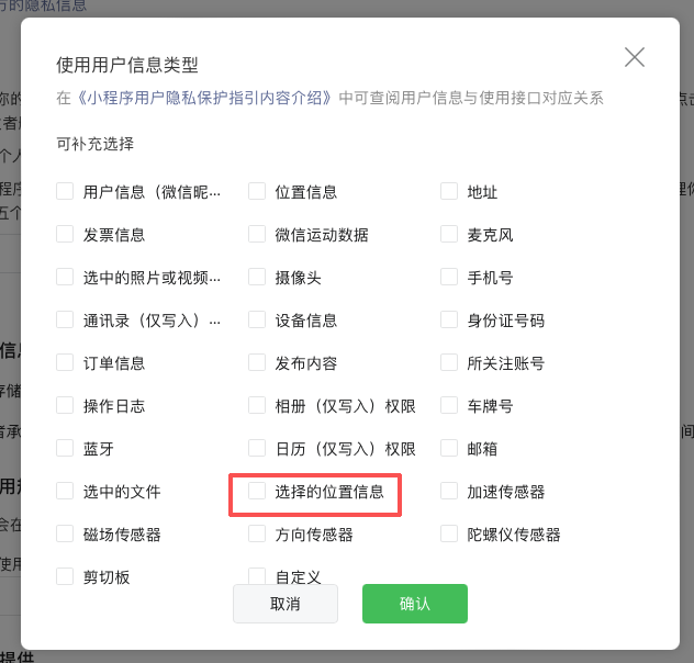 我看到你有声明的是【收集你的位置信息】,要注意:这是两个不同的隐私类型哈,相差两个字。建议尽快补充该隐私类型声明,待审核通过后过一段时间再试。