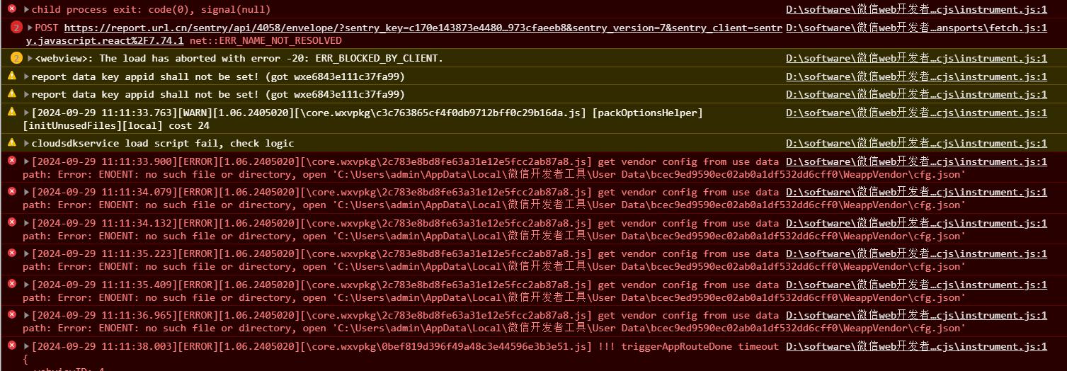 怀疑开发工具出现问题,打开调试微信开发者工具