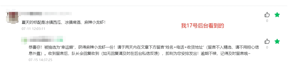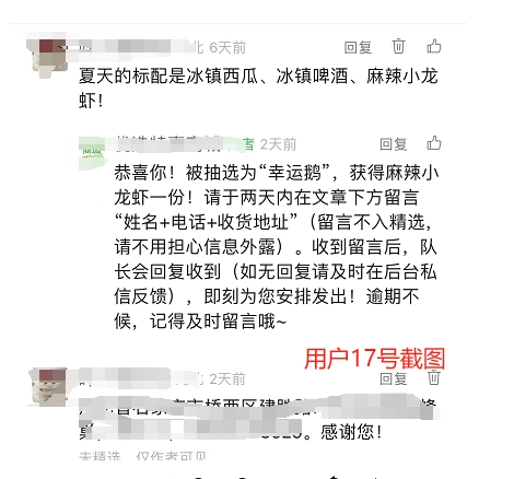在公众号做了留言抽奖活动,当天回复提醒用户中奖了让留言提交地址,用户回复留言已提交,但后台搜索显示没有改用户提交过的地址。后续让用户找客服重新提交地址,用户也截图了当天提交的回复。