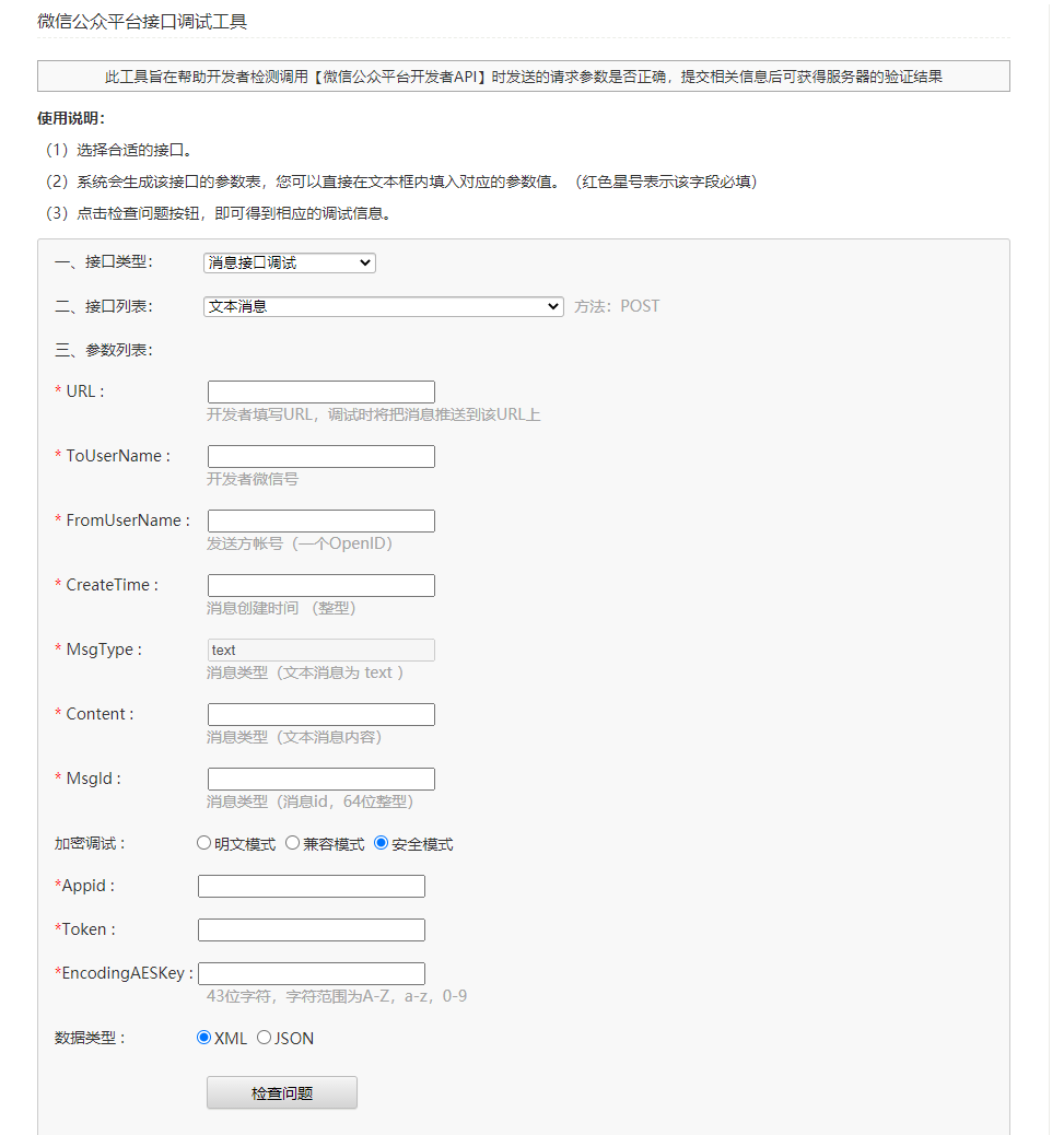 微信公众平台接口调试工具:https://mp.weixin.qq.com/debug