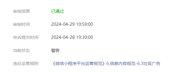 小程序前两天因被人举报违规,被下线,不懂申诉流程,做成整改了,但是没有重新上下线新版的小程序,直接申诉的,导致申诉没通过,然后调用了之前的警告申诉通道,重新更新了下新版的小程序版本,在申诉,申诉显示成功提示已取消限制,但是小程序界面还是暂停服务。也无法运用小程序店铺,店铺本身是自主品牌的网店,卖一些球鞋护理之类的东西。最新的审核通道也没有,联系站内人工客服,一直显示排队1000+,希望有管理能看到帮我核实下情况,帮忙取消限制。谢谢