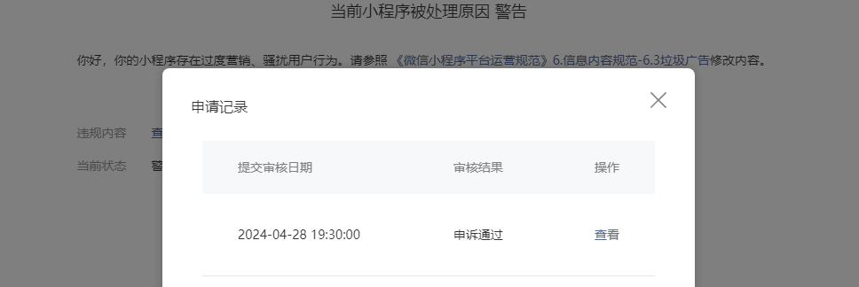 违规情况已通过站内信下发,可在mp后台登录查看详情根据站内信指引完成整改后发起申诉即可。