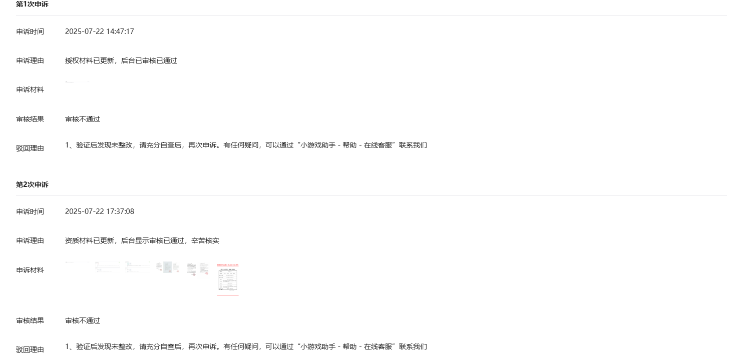 2025年7月22日续约授权资质已提交过审,但是进行申诉时一直提示未整改。