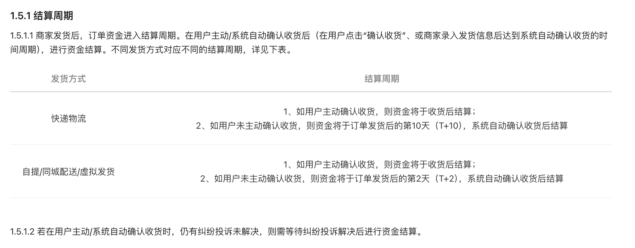 你好,提供实物商品或盲盒商品的在线销售及配送相关服务(包括但不限于物流快递、同城配送等方式)的小程序,根据平台规则,需在平台上传发货信息,订单资金将在用户主动/系统自动确认收货后进行结算。可参考《实物电商类小程序运营规范》1.5 资金结算1.5.1 结算周期https://developers.weixin.qq.com/miniprogram/product/jiaoyilei/yunyingguifan.html#_1-5-%E8%B5%84%E9%87%91%E7%BB%93%E7%AE%97