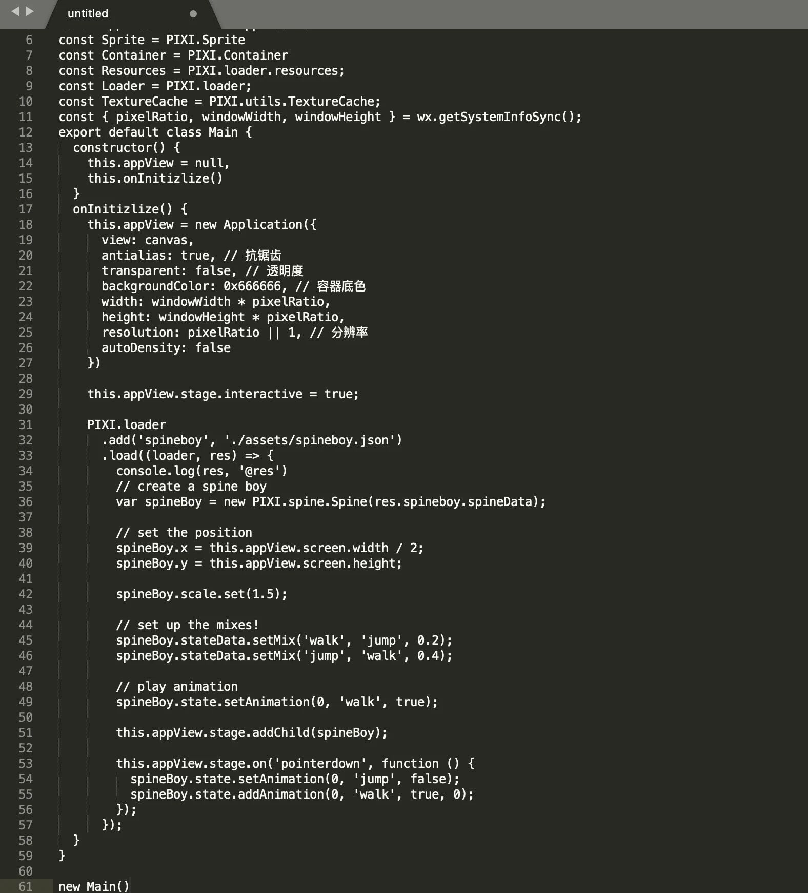 pixi官方案例地址: https://pixijs.io/examples-v4/?v=v4.8.8#/plugin-spine/spineboy.js