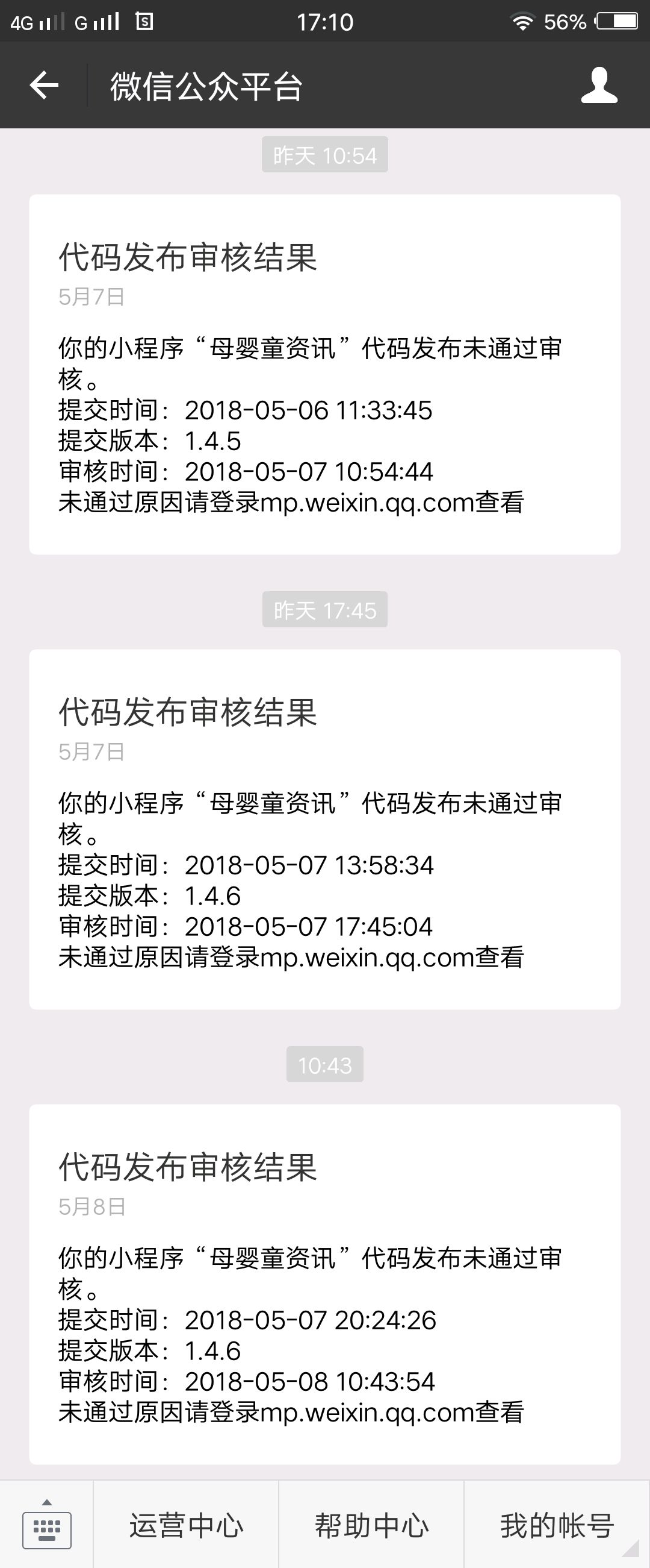 你的小程序"母婴童资讯"代码发布审核未通过,原因如下:1:小程序内容不符合规则:(1):涉及平台未开放类目内容:诱导分享朋友圈