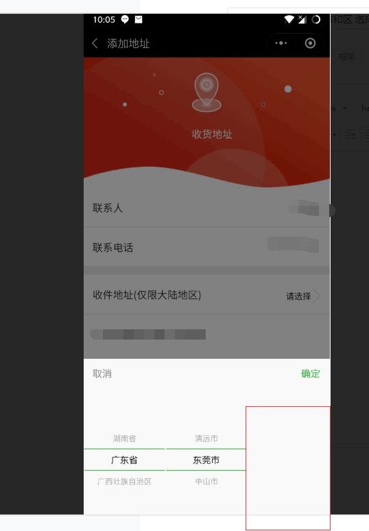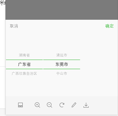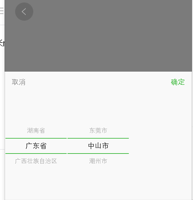 一加手机出现以下情况: 选择了中山市或者东莞市后,第三列就空白了,其他没有问题