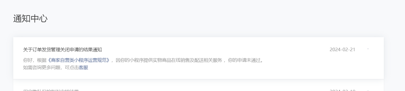 1.根据《实物电商类小程序运营规范》,提供实物商品(食品饮料、数码3C、珠宝玉石等)或盲盒商品的在线销售及配送相关服务(包括但不限于物流快递、同城配送等方式)的小程序,均需接入平台订单发货管理功能,但是本小程序不属于商家自营的类目,本小程序是提供预约报名的时候支付费用的,不涉及发货管理功能管控要求. 2.本小程序是提供用户查看生源信息并报名,报名的时候需支付报名费用,支付完成后立马可以获取报名联系信息的,不需要发货确认的,用户支付就可以获取的,所以无法接入订单发货管理。