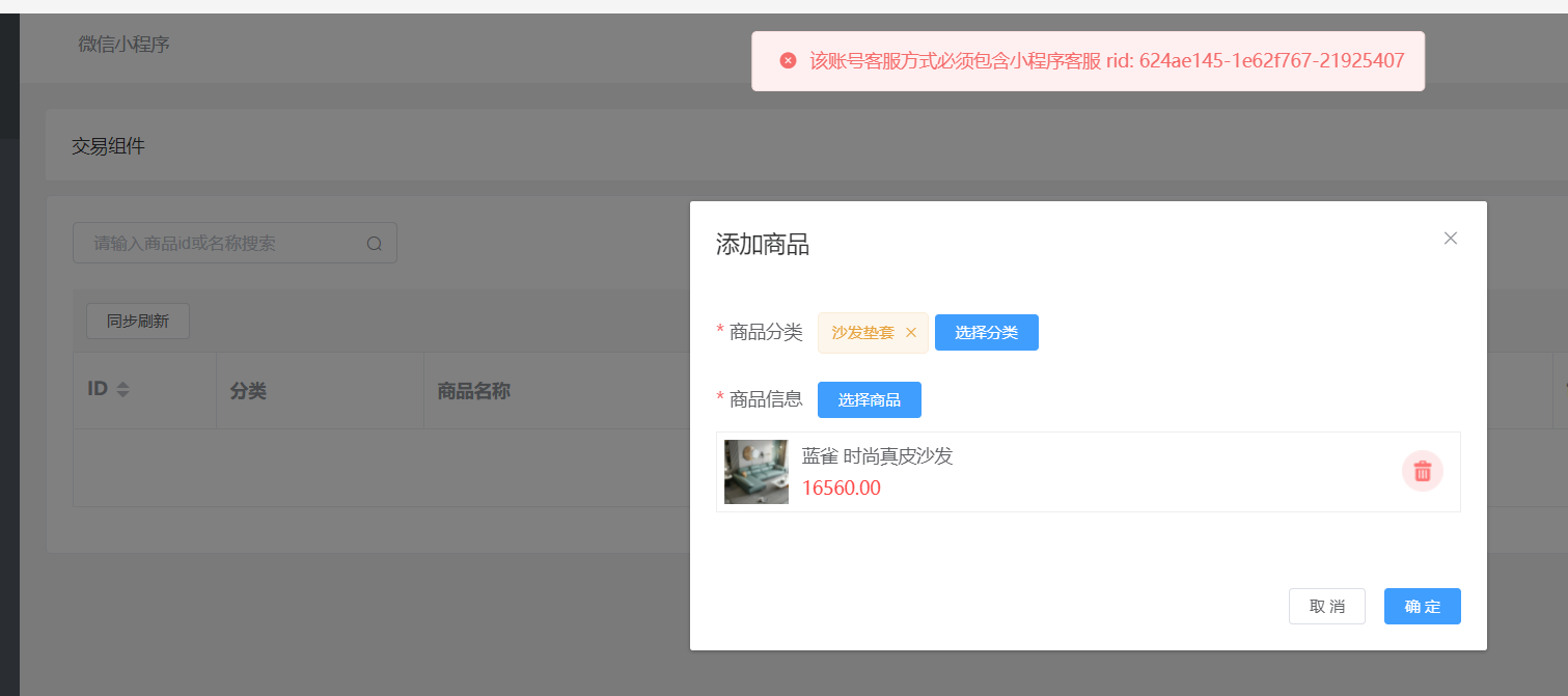 通过API提交,新增商品时,依然提示“该账号客服方式必须包含小程序客服”