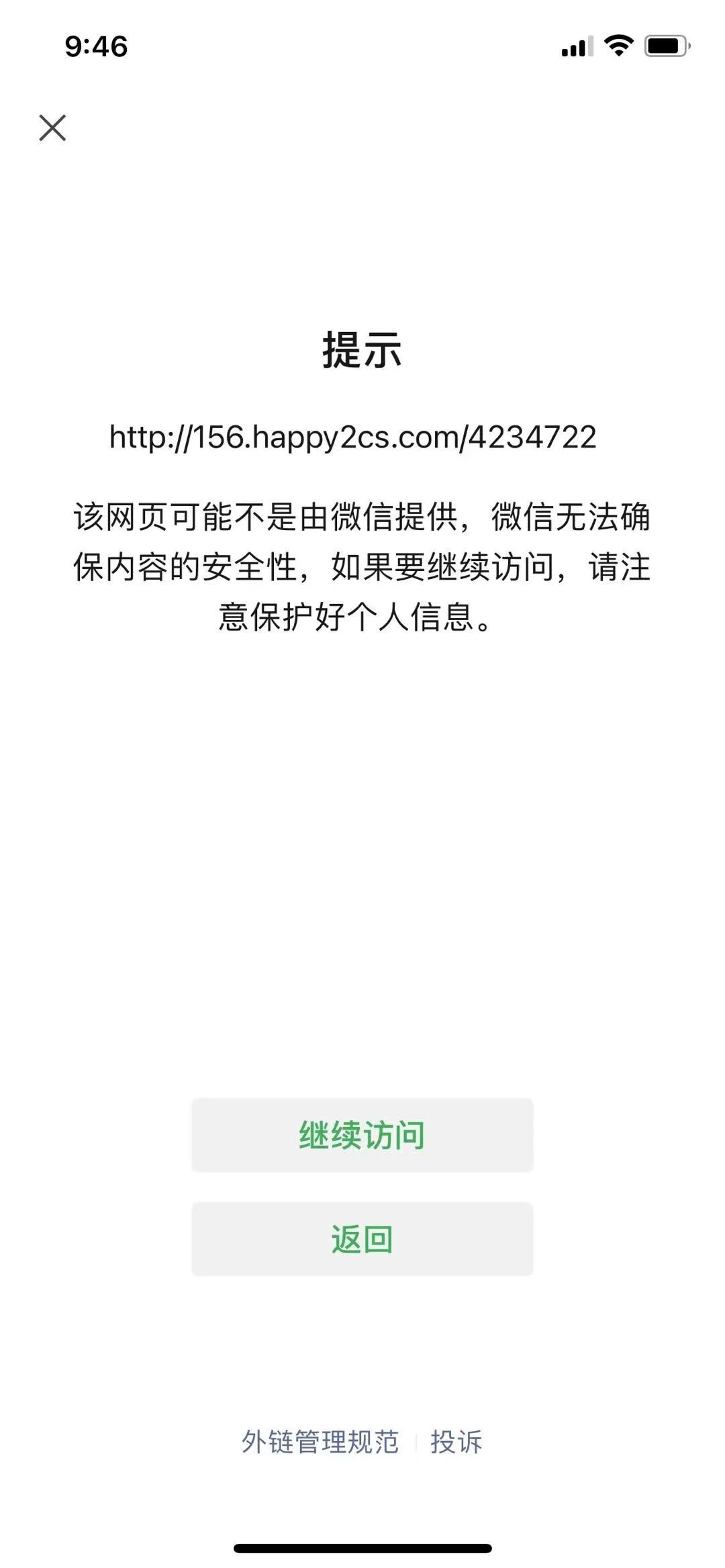 微信中打开活动链接,直接进入外链提示页面,并且进入页面后点击分享无法选择分享好友及朋友圈,是链接被封了还是其他问题?