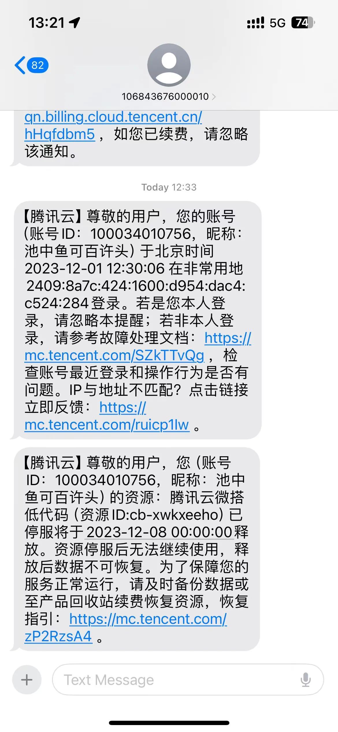 来了信息显示腾信云要给我释放资源了,但是我的环境还有一个月才到期呀,都是同一个程序下的