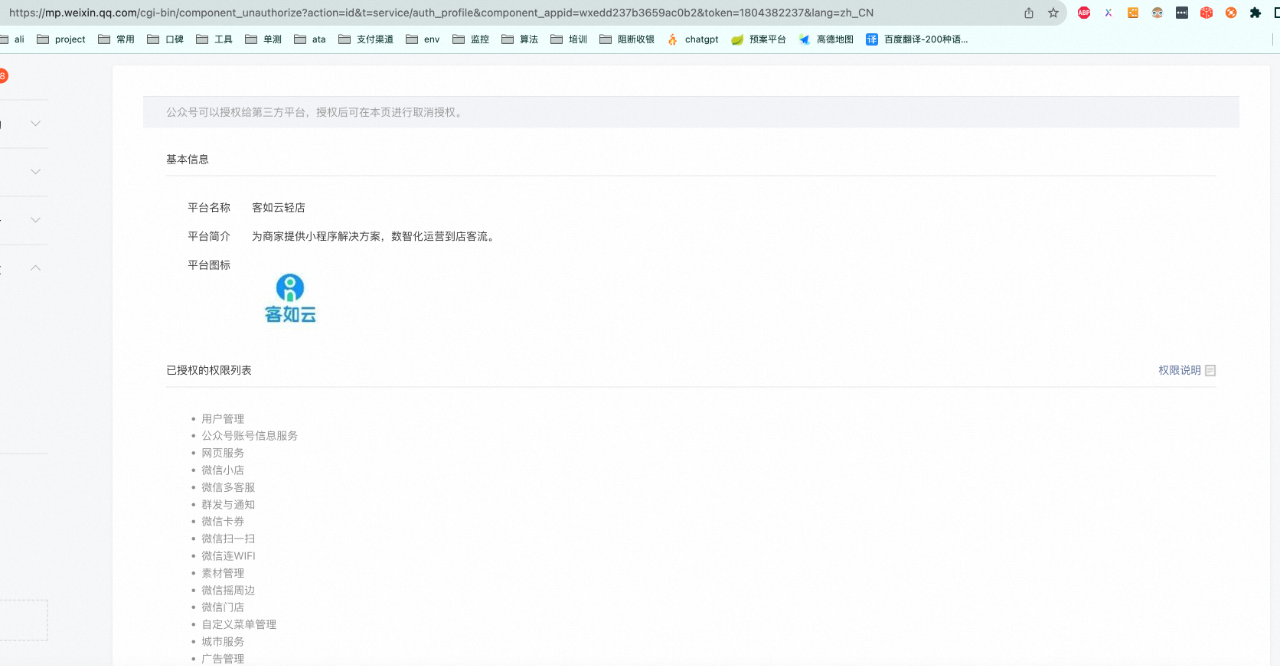 你好,经核查,wx4f2a085d8997519f未授权给链接中的第三方wx004cbf32587f3789