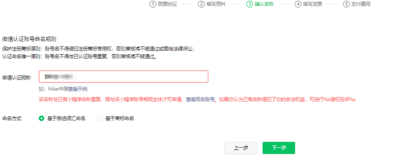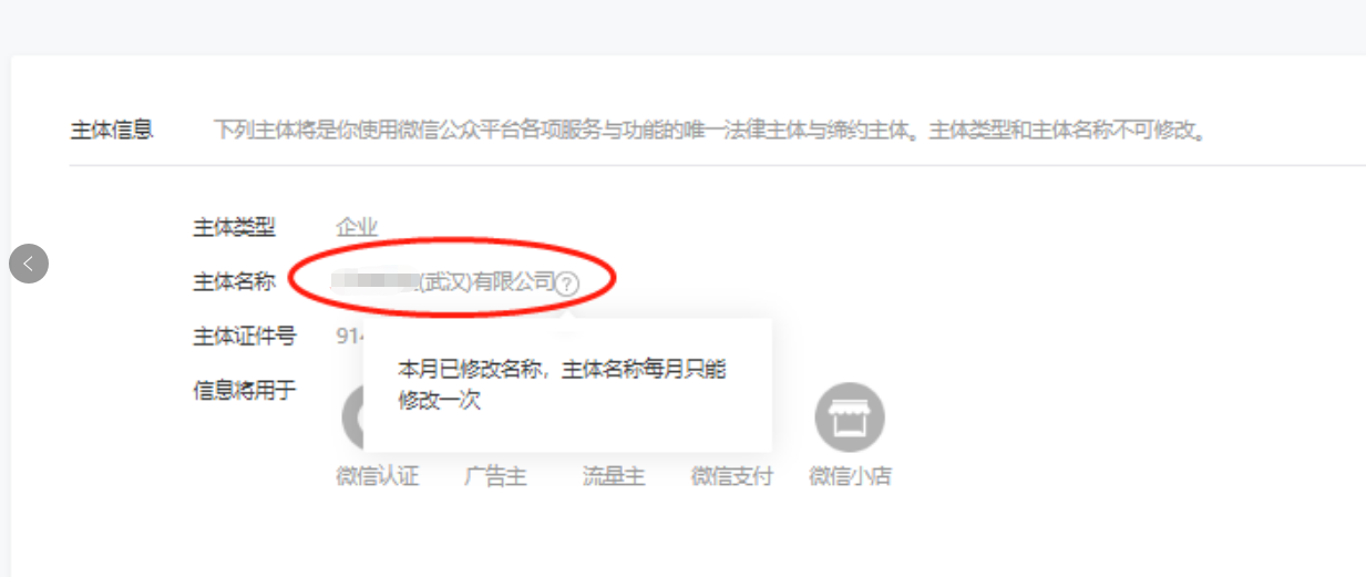 注册公众号时填写的主体名称里的括号中英模式错了 导致无法使用同主体小程序的相同名称