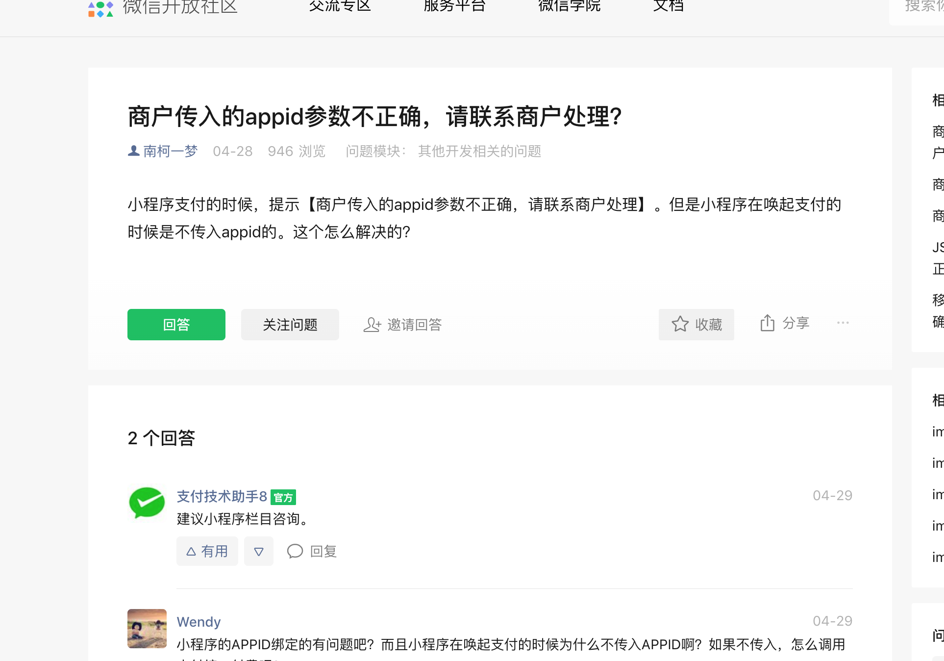 微信支付专区:https://developers.weixin.qq.com/community/pay