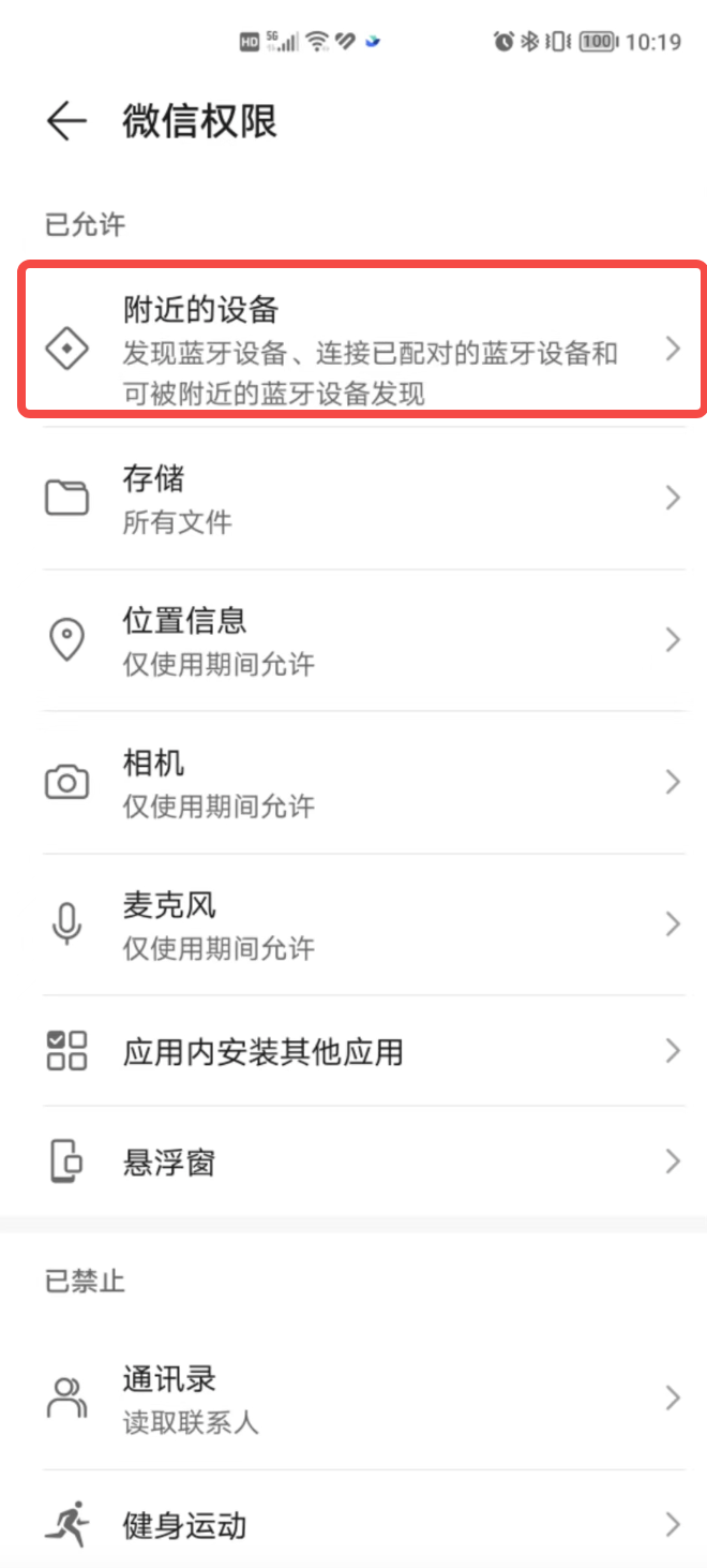例如,您可以使用以下代码来查询附近的设备权限的状态:
