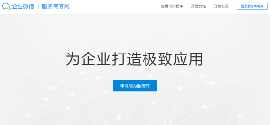 第一步,成为企业微信的服务商,具体方法在企业微信服务商官网(https://open.work.weixin.qq.com/)注册申请成为服务商。