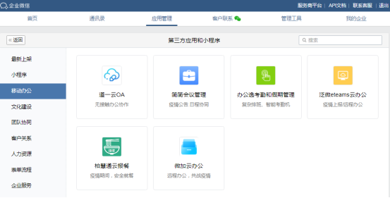 据悉,截至2019年10月份,企业微信应用市场上已经有15000个自发接入的第三方应用,其中有4300个合格应用已经上线。
