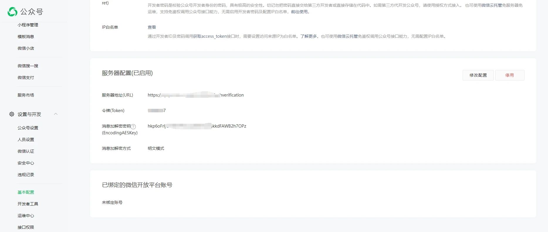 我已经在公众号管理端配置了服务器配置,为什么我用另外一个手机关注和取消关注这个公众号,它并没有请求下图中的服务器地址URL呢?我是按照图二的说明操作的!请指教!