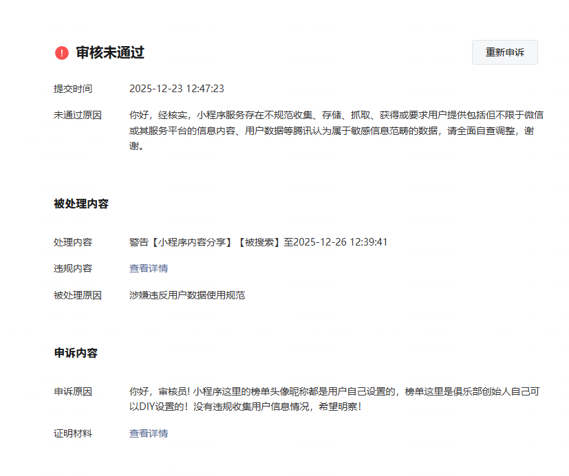 我已经在用户隐私协议中明确说明了用途呀,依旧申诉不通过呀!