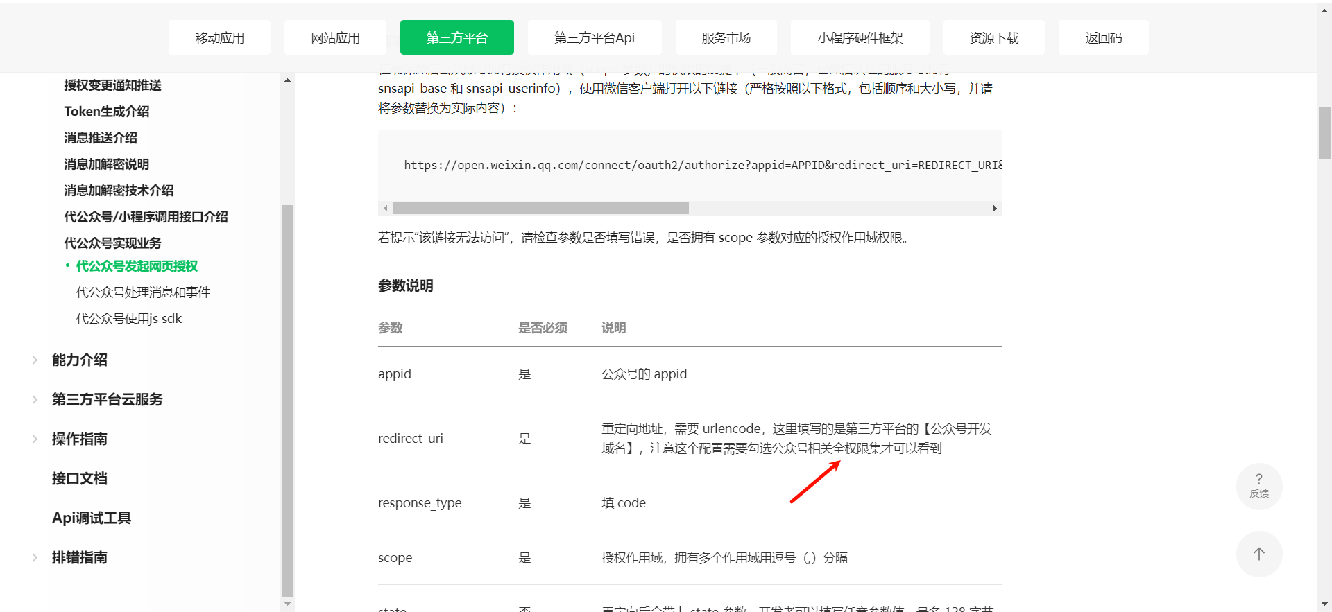 https://developers.weixin.qq.com/doc/oplatform/Third-party_Platforms/2.0/api/Before_Develop/Official_Accounts/official_account_website_authorization.htmlhttps://developers.weixin.qq.com/doc/oplatform/Third-party_Platforms/2.0/api/Before_Develop/Official_Accounts/official_account_website_authorization.html
