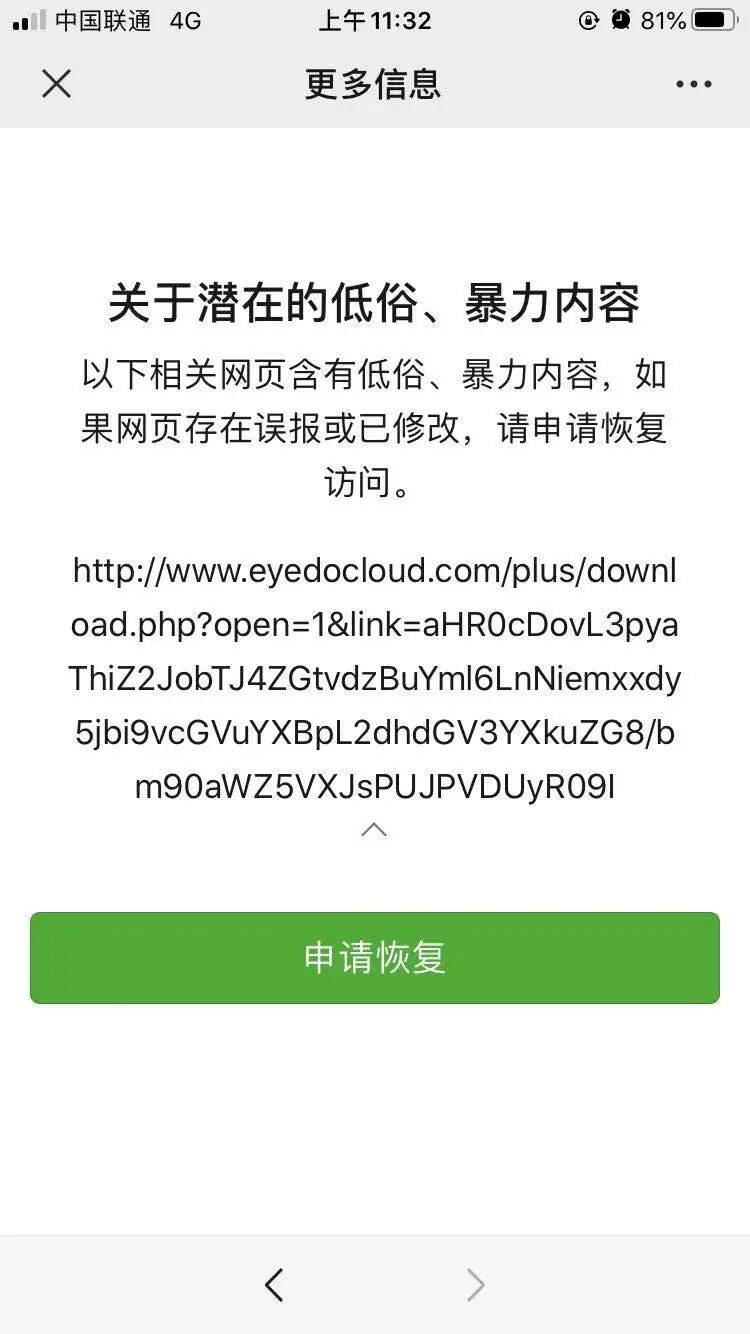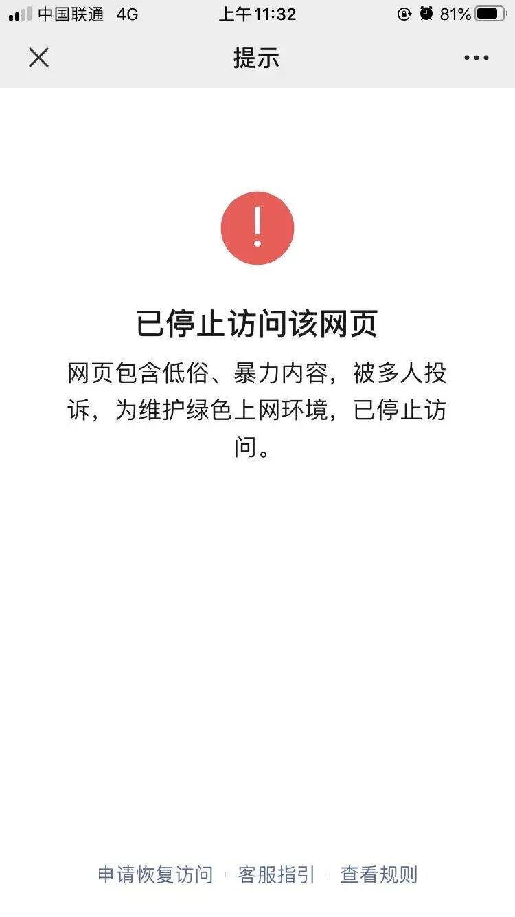 官网域名被微信,提示已停止访问该网页,内网论坛且使用微信旗下discuz.com程序,一直提示有违规内容