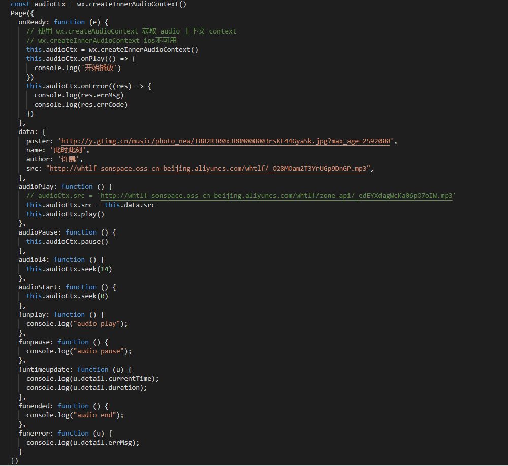播放按钮点击事件 audioPlay 点击后触发 innerAudioContext.play()