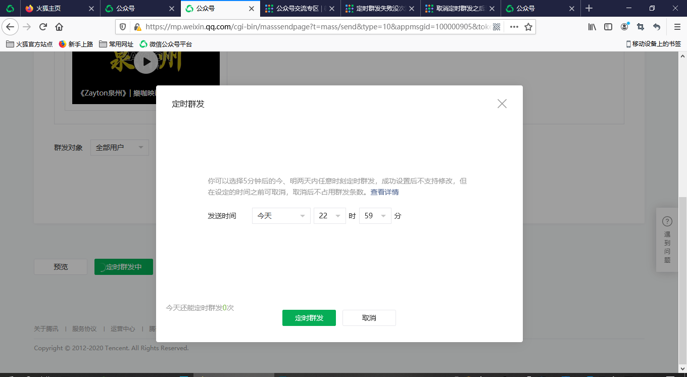 为什么定时群发,然后显示内容发送失败还浪费了一次群发的次数,这又是要怎么搞?定时群发为视频内容,审核一小时内群发消息,望有关技术部门处理一下,看是什么情况,这种情况到今天两次了!微信公众号:獨立設計師 | 王晶永