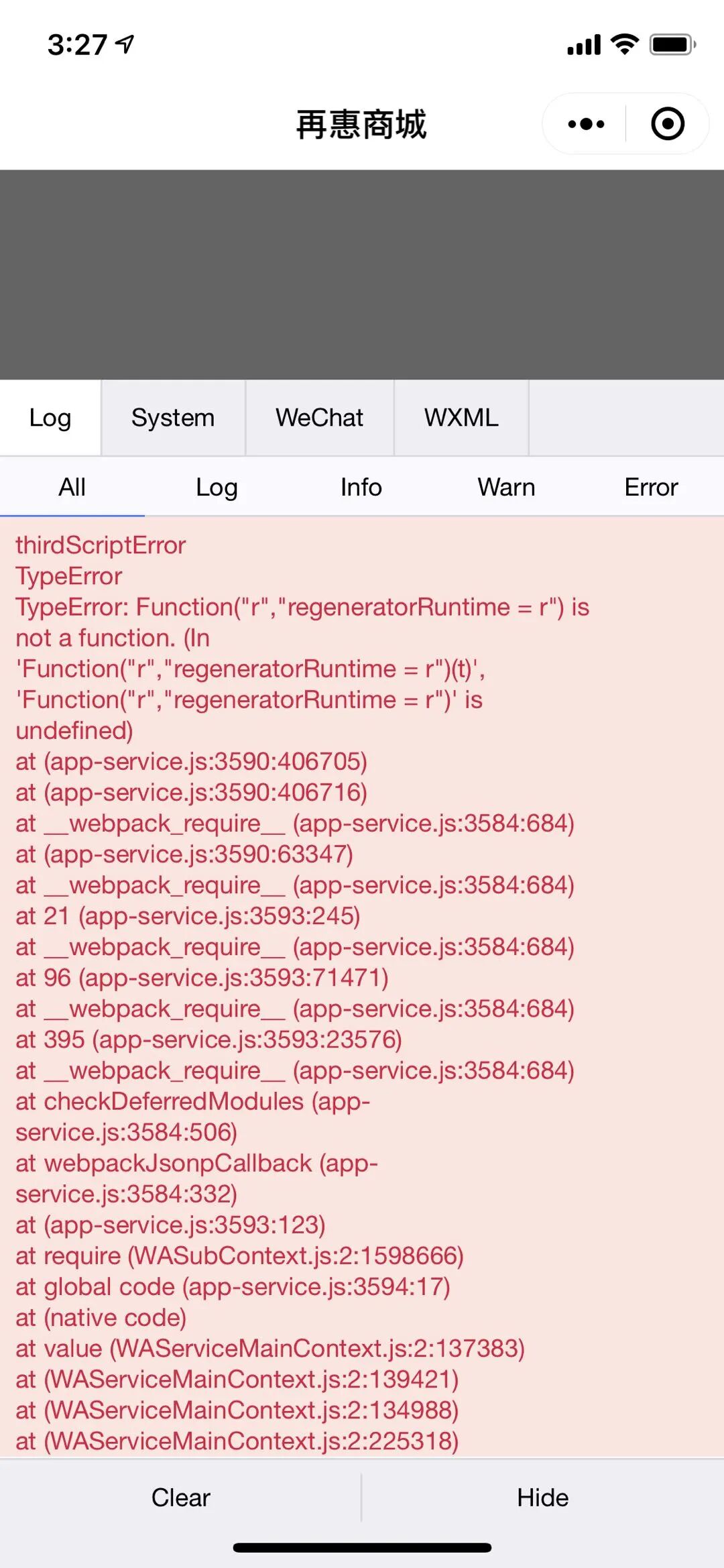 打开小程序白屏,报错信息Function("r","regeneratorRuntime = r") is not a function.