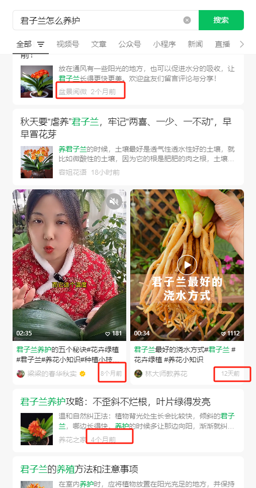我们花店也是这样,视频号,订阅号,无论怎么更新,就是得不到展现。搞不懂他这个排名为什么把几个月以前的内容展现在前面,现在自媒体时代,信息变化很快。