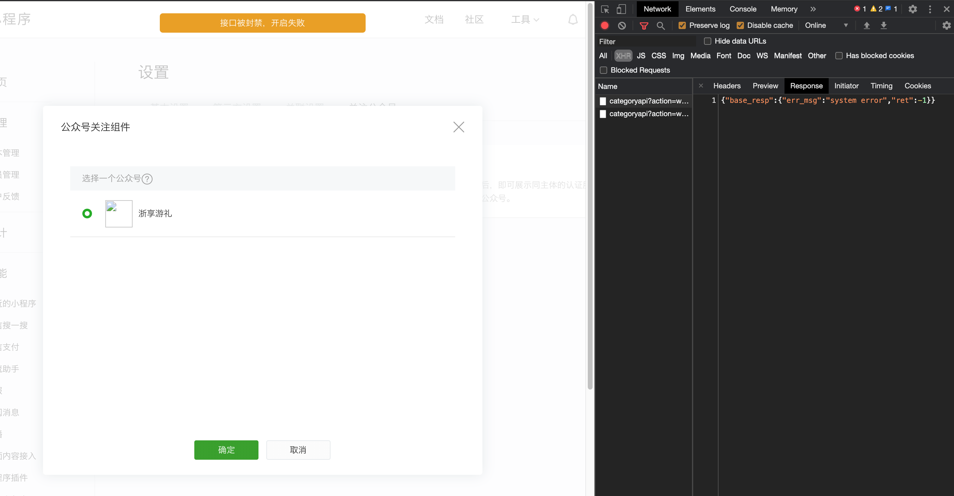 那是因为已经有其他小程序关联这个公众号,所以其他的小程序再关联关注同一个公众号就不行了