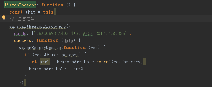 现在我有个项目是通过蓝牙来获取具体的beacon,根据beacon的信号强弱来实现定位功能,用到了wx.openBluetoothAdapter、