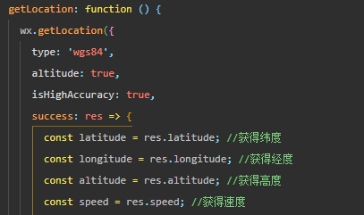 console.log('获取的经纬度和海拔高度:', res.latitude, res.longitude, res.altitude);