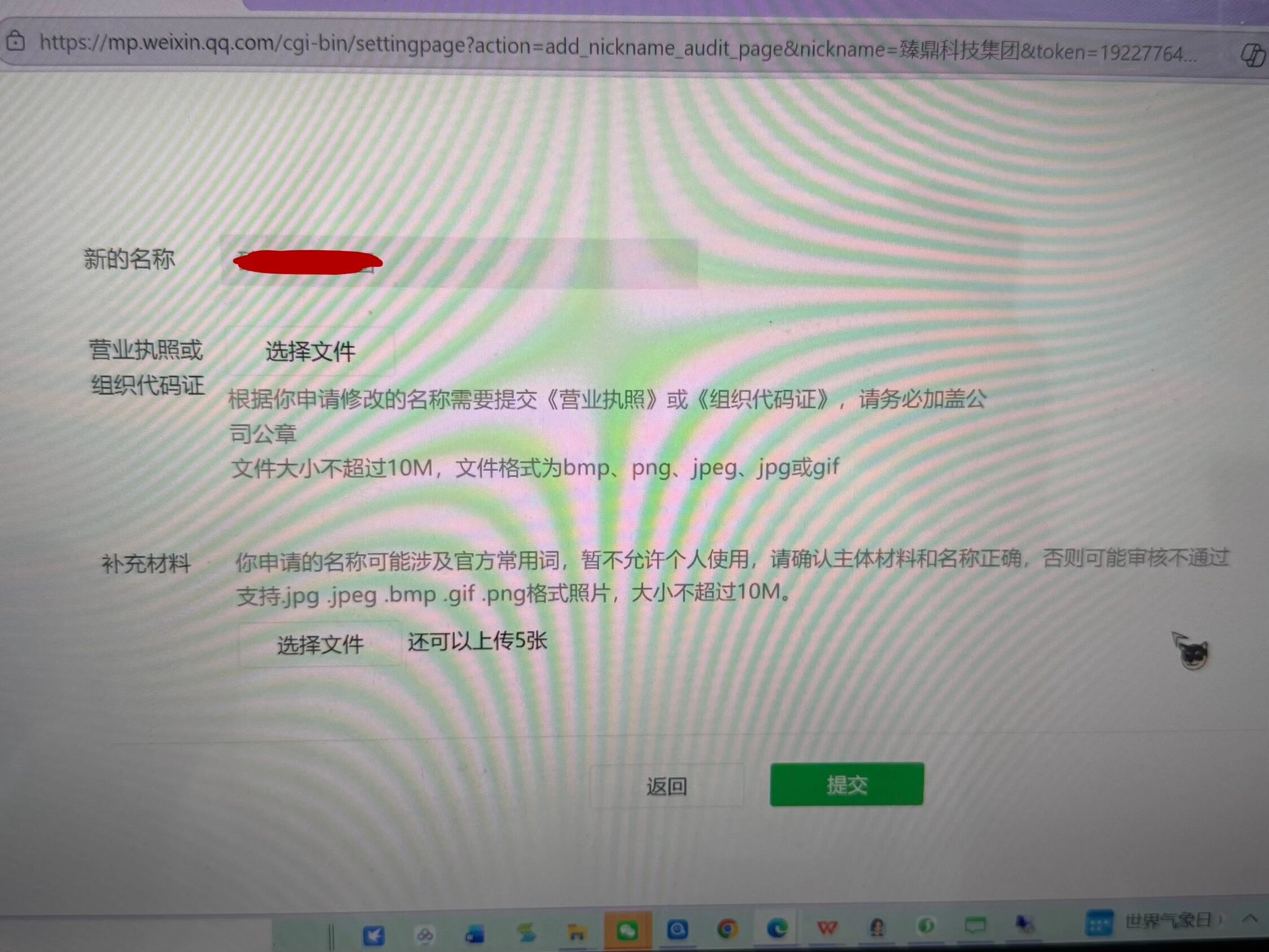 我们集团是台湾的,子公司在大陆挂牌上市,用的是子公司的营业执照注册了公众号,现在要改名称需要提供什么资料?