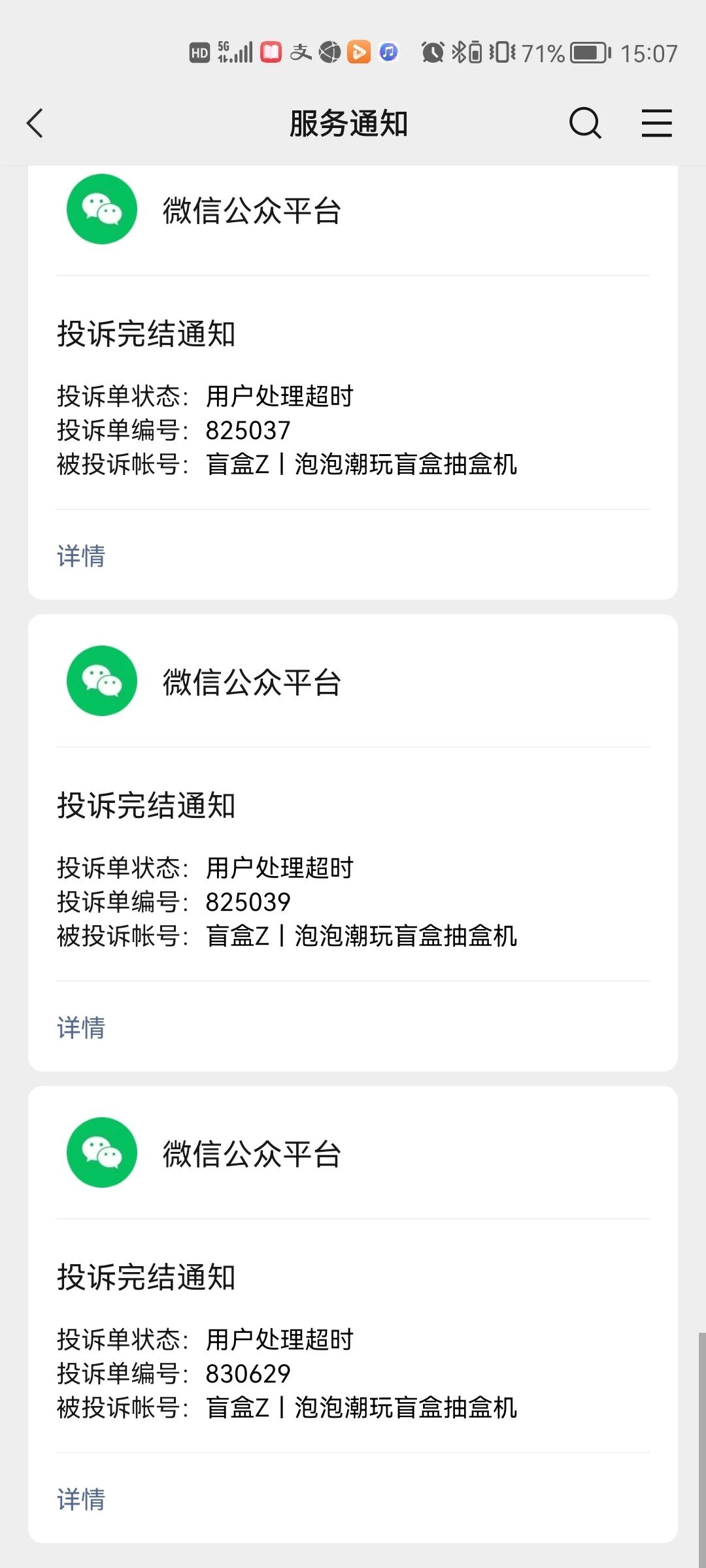 名为“盲盒Z”的小程序,12月27日购买的盲盒订单,25天了还未发货,在小程序内投诉无果,投诉工单也未按约定时间处理。想重新发起投诉,但是微信提示我同一个订单不能发起2次投诉,所以只能来这里找你们了