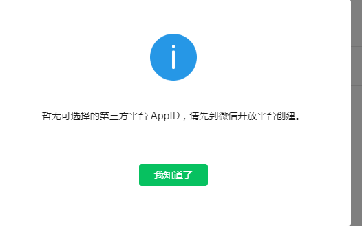 微信开放社区服务平台,想认证企业号上架服务,创建企业主页时认证主体,选择了相应的小程序或公众号,弹出消息告知没有可选择的第三方平台APPID,该如何操作