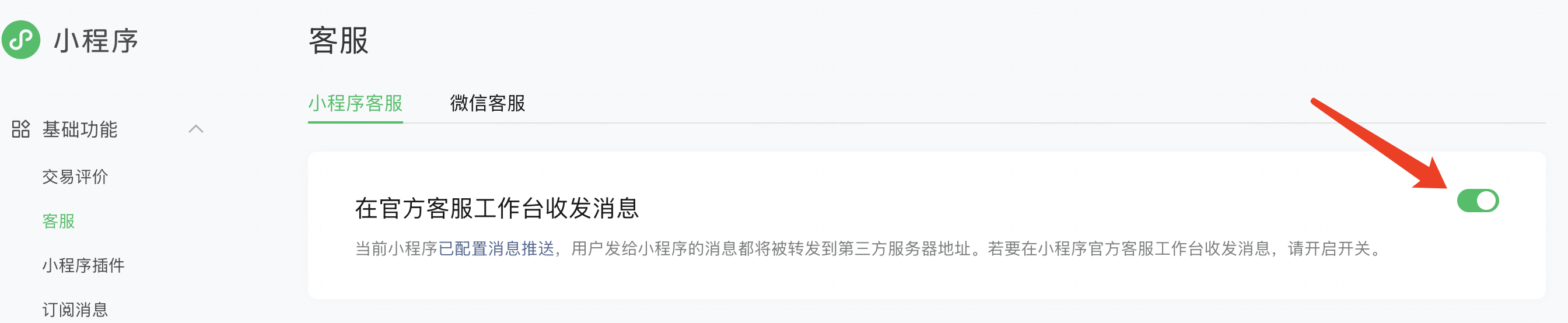已定位到原因:由于小程序配置了消息推送,客服信息会直接转发到推送地址的回调去。在基础功能—客服—小程序客服—在官方客服工作台收发消息,将开关打开即可